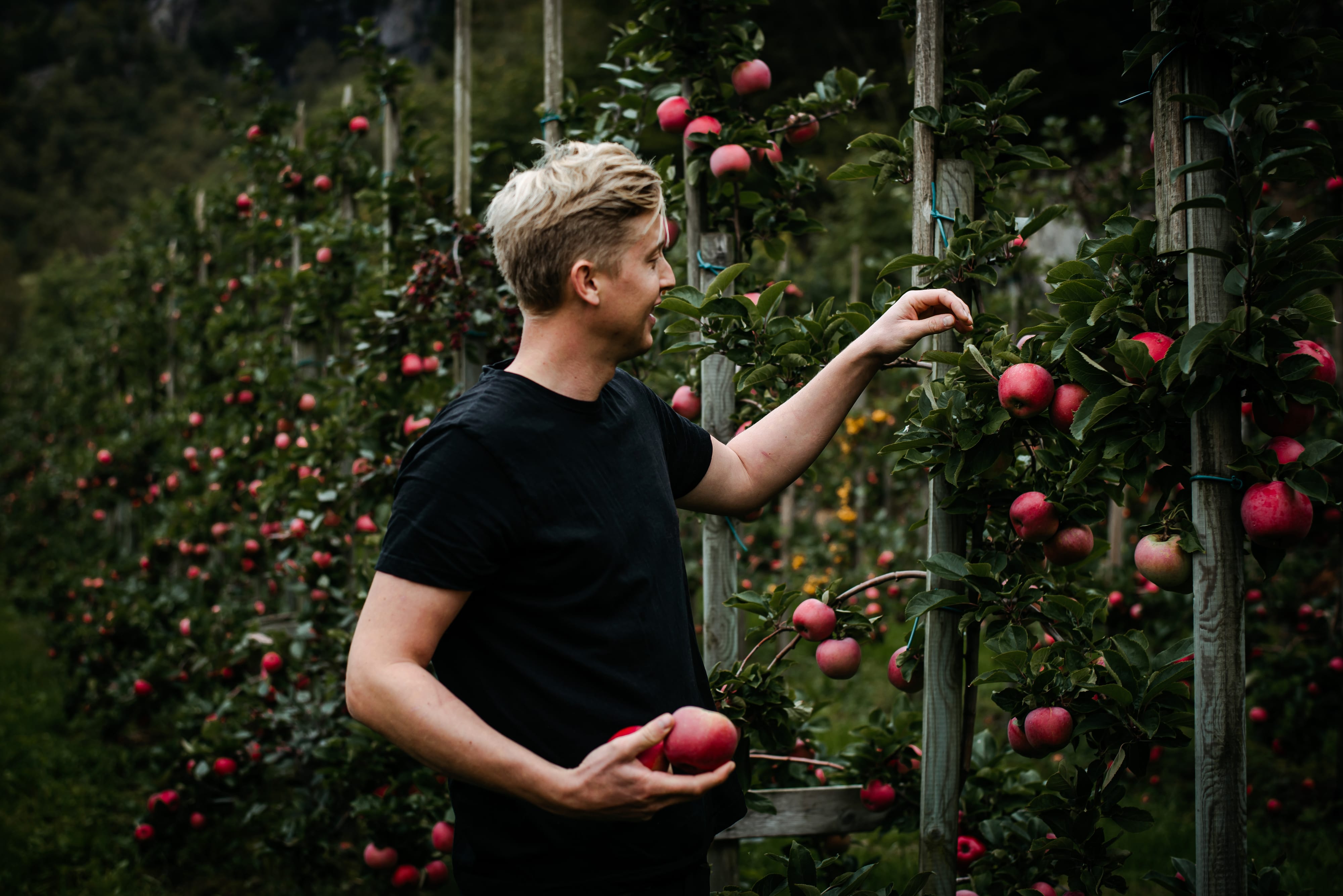 Dan Olav Sæbø er 9. tippoldebarn til Elling Knutson, som kjøpte Sæbø i 1628. Dan Olav overtok garden i 2020, og satsa då på produksjon av eplesider og eplejus.