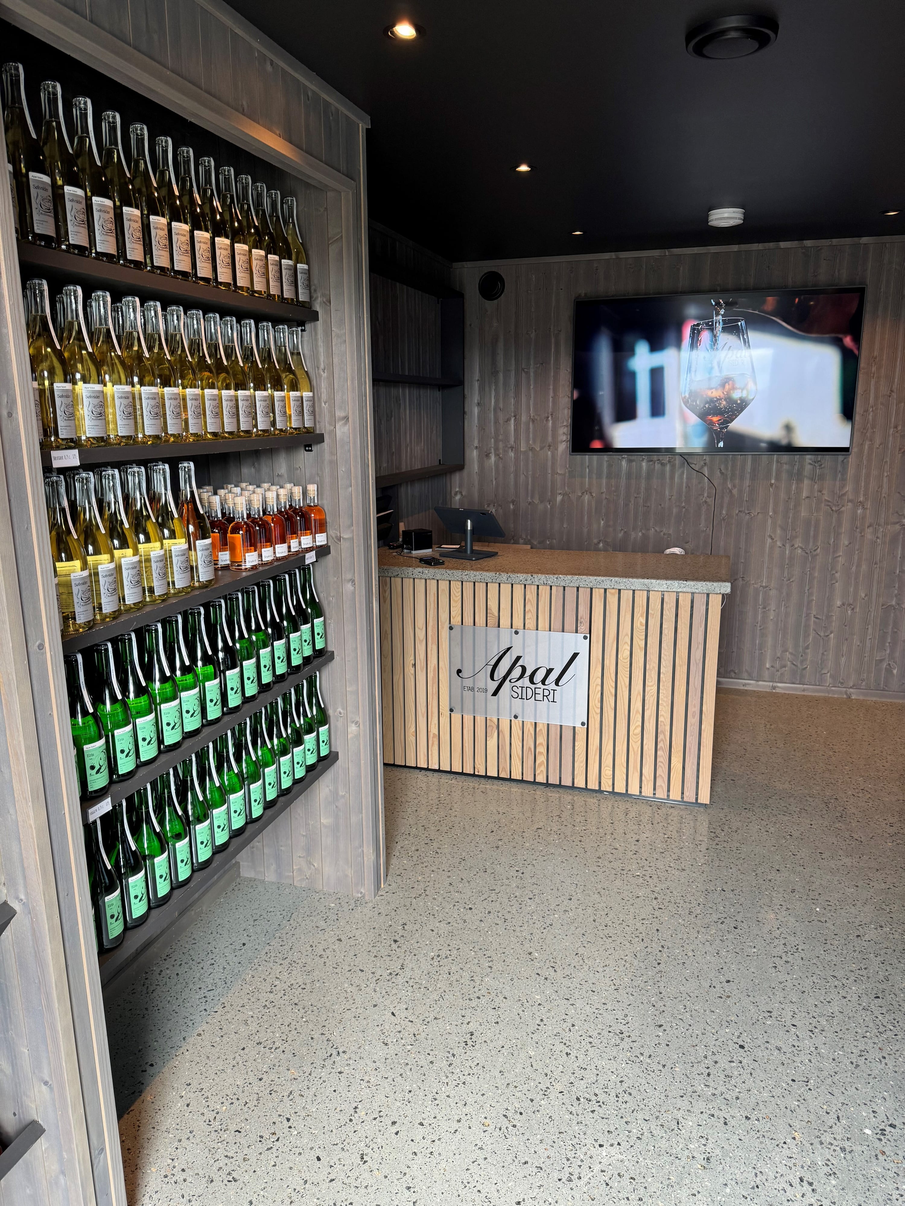 Vi leiker ikkje butikk, difor har me òg ein butikk der du kan kjøpe alle produkta til Apal Sideri, både med og utan alkohol. Utanom flaskene, sel me også andre lokale varer me likar godt. Her får du mykje av det du treng til helgekosen.